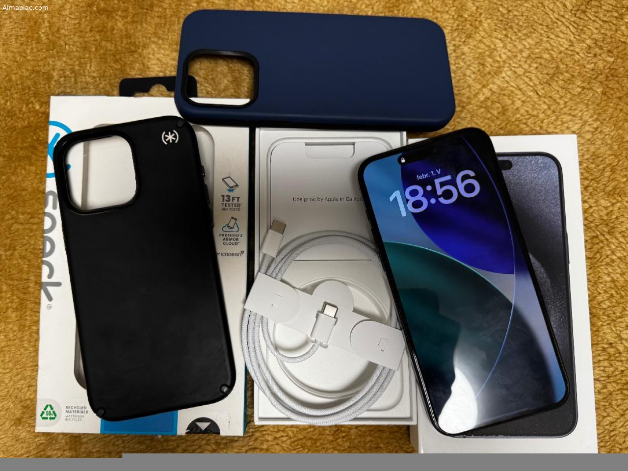Eladó titán kék iPhone 15 Pro Max 256 gb-os hálózat független telefon. Kiváló állapotban. Egy évet volt használva tükör fóliával és tokban. Akkumulátor 97%-on, teljesen új töltő kábellel, eredeti dobozában minden tartozékával, két db kemény kiváló állapotban lévő kék és fekete tokkal.