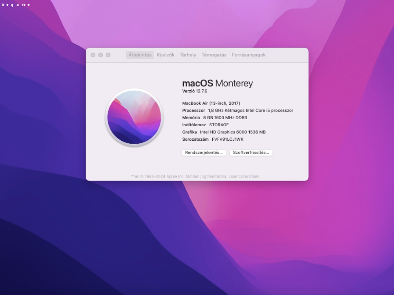 2017 MacBook Air 13" 128GB SSD, 8GB, Magyar billentyűzet, Új akku